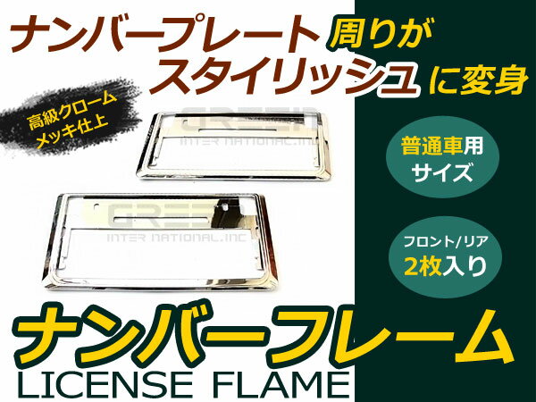 ナンバープレート用フレーム枠 クロームメッキ 2枚セット ライセンスメッキリム シルバー 普通車 軽自動車 【汎用 ナンバープレート ナンバーガーニッシュ トヨタ 日産 ホンダ ダイハツ スズキ フロント リア リヤ メッキモール メッキライン と相性抜群】