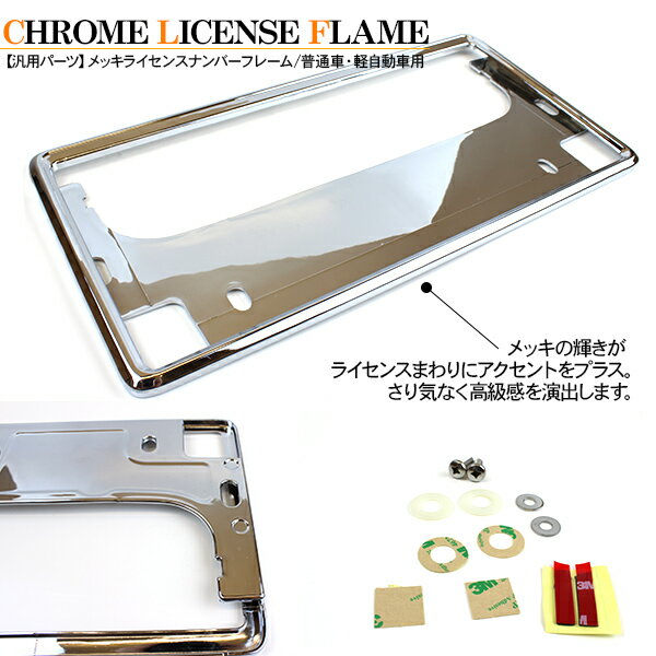 メッキナンバーフレーム/ライセンスフレーム メッキカバー 2枚組 普通車/軽自動車 フロント+リアセット