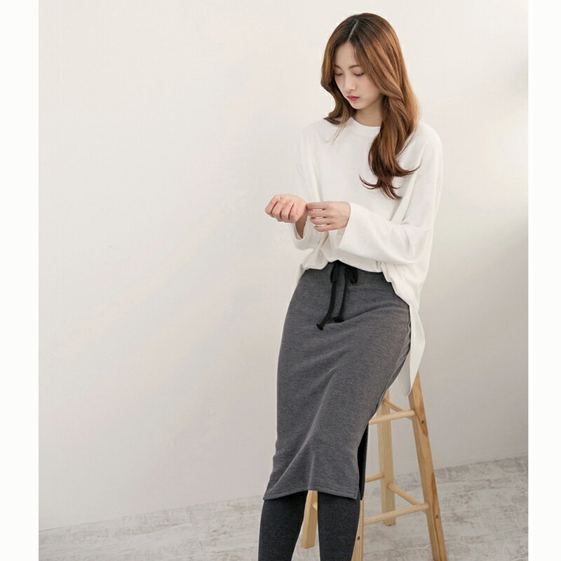 【メール便送料無料】2TYPE[裏起毛/裏起無]スカート付レギンス ミディアム丈 スリット入り/スリット入り ウエスト紐ひざ丈スカートレギンス/スカッツ
