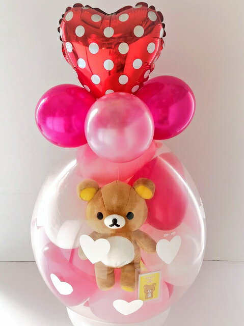 ■リラックマのかわいいぬいぐるみと、小さなバルーンがたくさん透明のバルーンの中に入っています。
